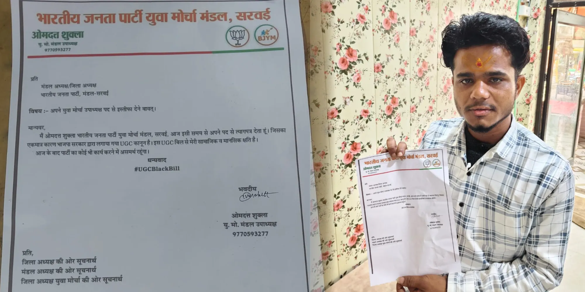 UGC कानून के विरोध में भाजपा युवा मोर्चा पदाधिकारी का इस्तीफा मध्यप्रदेश के छतरपुर जिले के ग्राम सरवई में UGC कानून के विरोध को लेकर प्रदर्शन के दौरान बड़ा राजनीतिक घटनाक्रम सामने आया है...